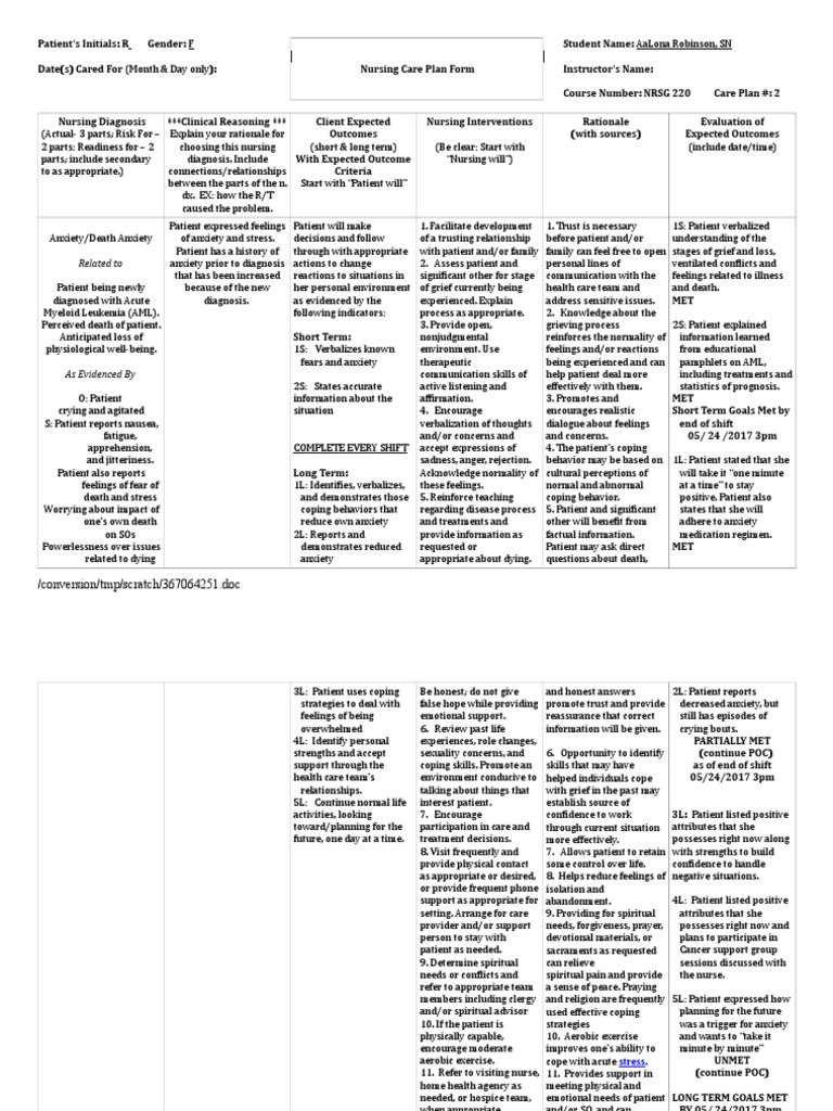 Anxiety Ncp Xls Nursing Diagnosis 3 Anxiety Related To Discomfort And Dread As Evidenced By Patient Stating That He Prefers To Stay At Hospital Course Hero