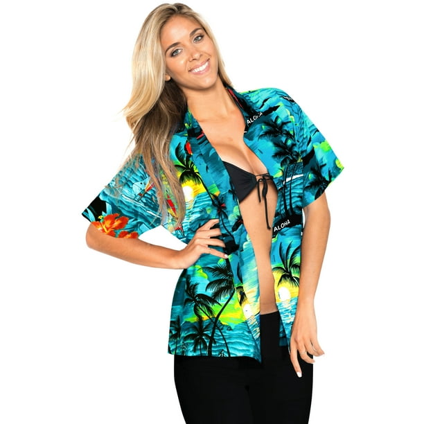 Happy Bay Women S Summer Hawaiian Blouse Shirt Beachwear Aloha Shirt S Teal X55 Walmart Com